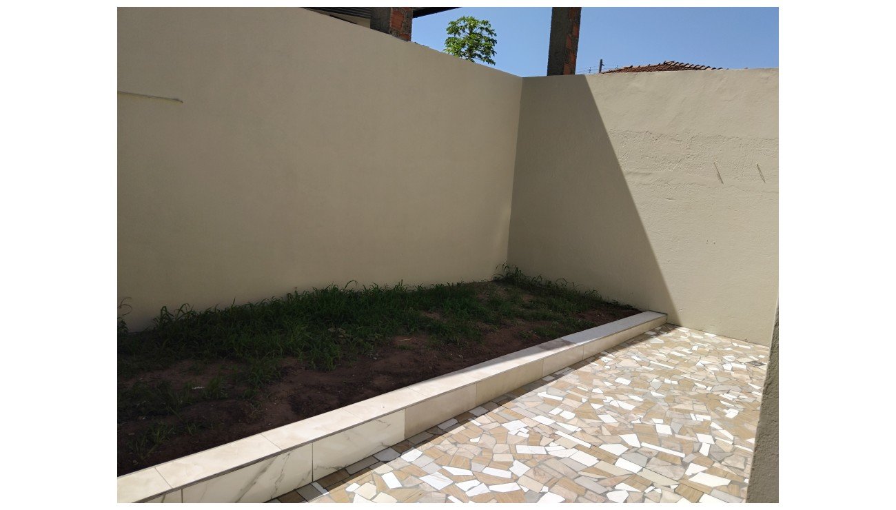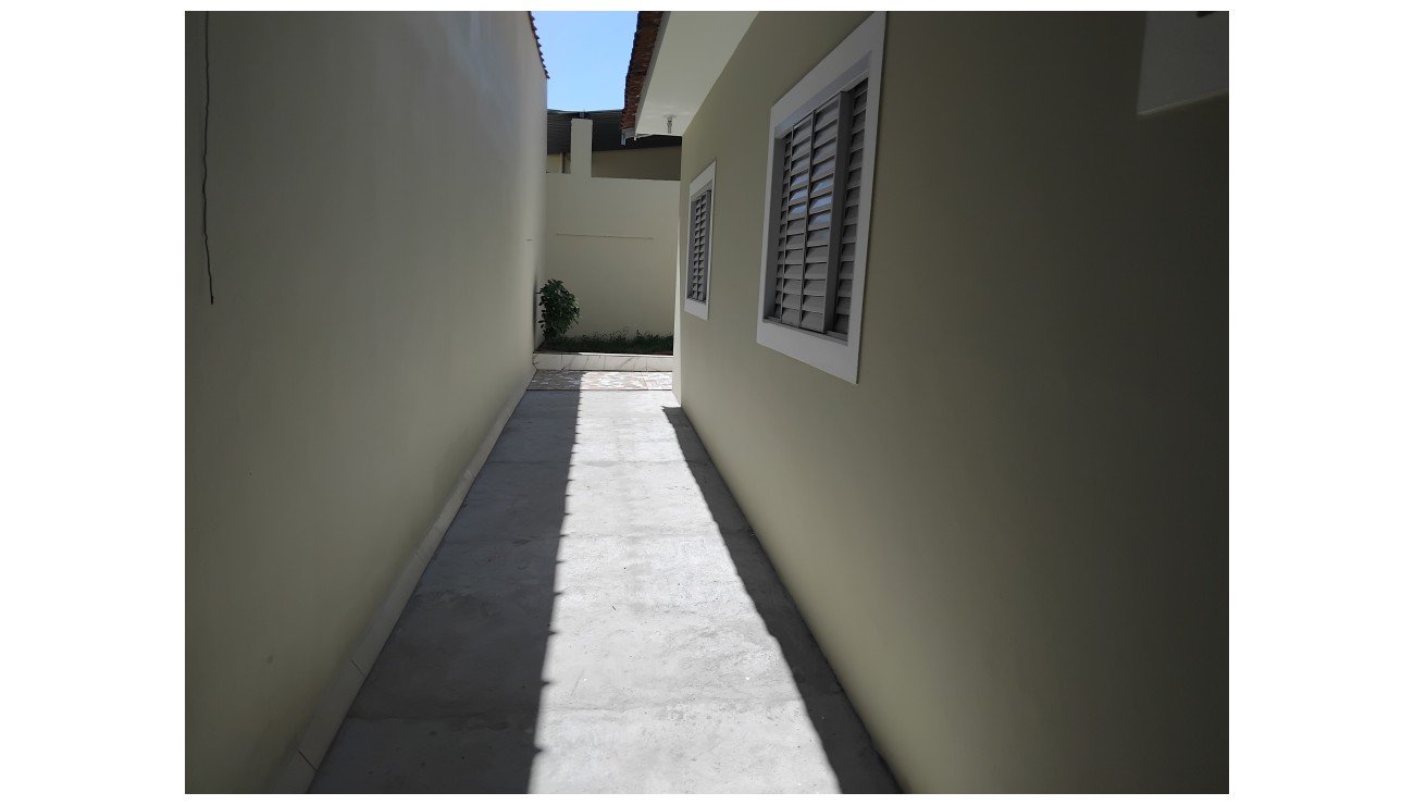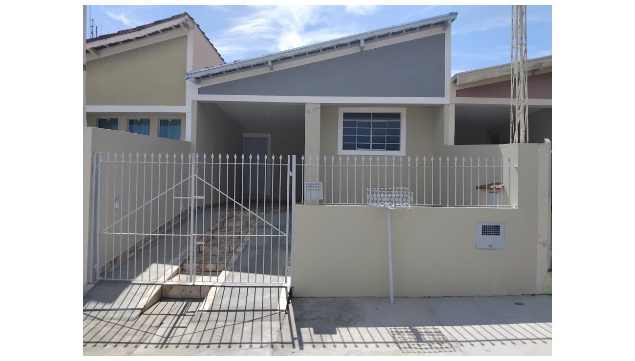 Casa com 2 dormitórios, sala, cozinha, banheiro social, lavanderia, garagem.